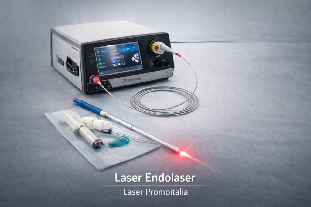 L’Endolaser Promoitalia est une technologie médicale avancée utilisée pour le traitement des varices, des vaisseaux profonds et le raffermissement cutané. Cette technique mini-invasive agit directement en profondeur grâce à une fibre optique très fine.